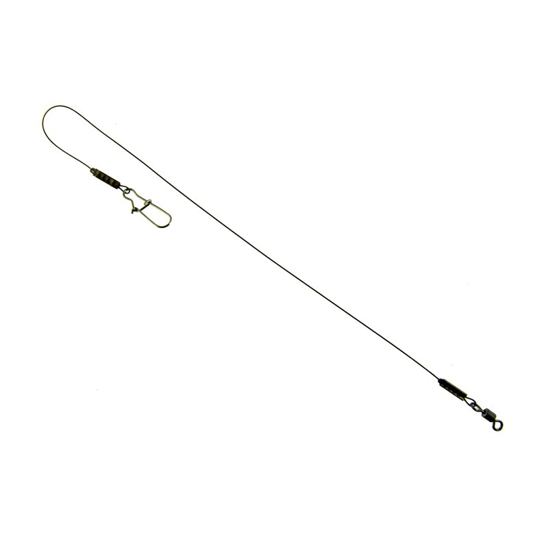 G.T.R Leader Stahlvorfach 7X7 12 kg Tragkraft Wir bieten euch hier ein äußerst robustes 7x7 Stahlvorfach mit 12 kg Tragkraft. Das Vorfach ist in zwei Ausführungen erhältlich: einmal mit Duo Lock Wirbel und einmal mit einem Fast Snap. Perfekt, wenn der Köder schnell gewechselt werden muss.Hergestellt aus Surflon Micro Supreme 7x7. Die Verbindungen wurden vor dem Pressen doppelt durch die Hülsen geführt. Snaps aus EdelstahlLänge: 30cmInhalt: 3 Stück